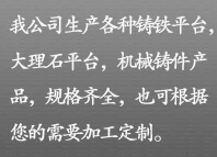 泊頭市溪海冶金機械設備有限公司主要產品為大型裝配平臺,定做T型槽平臺,高精度鑄鐵檢驗平臺,劃線平臺平板等量具產品;偏擺儀、齒輪跳動儀;地軌、床身鑄件;彎板平尺等近百個品種。